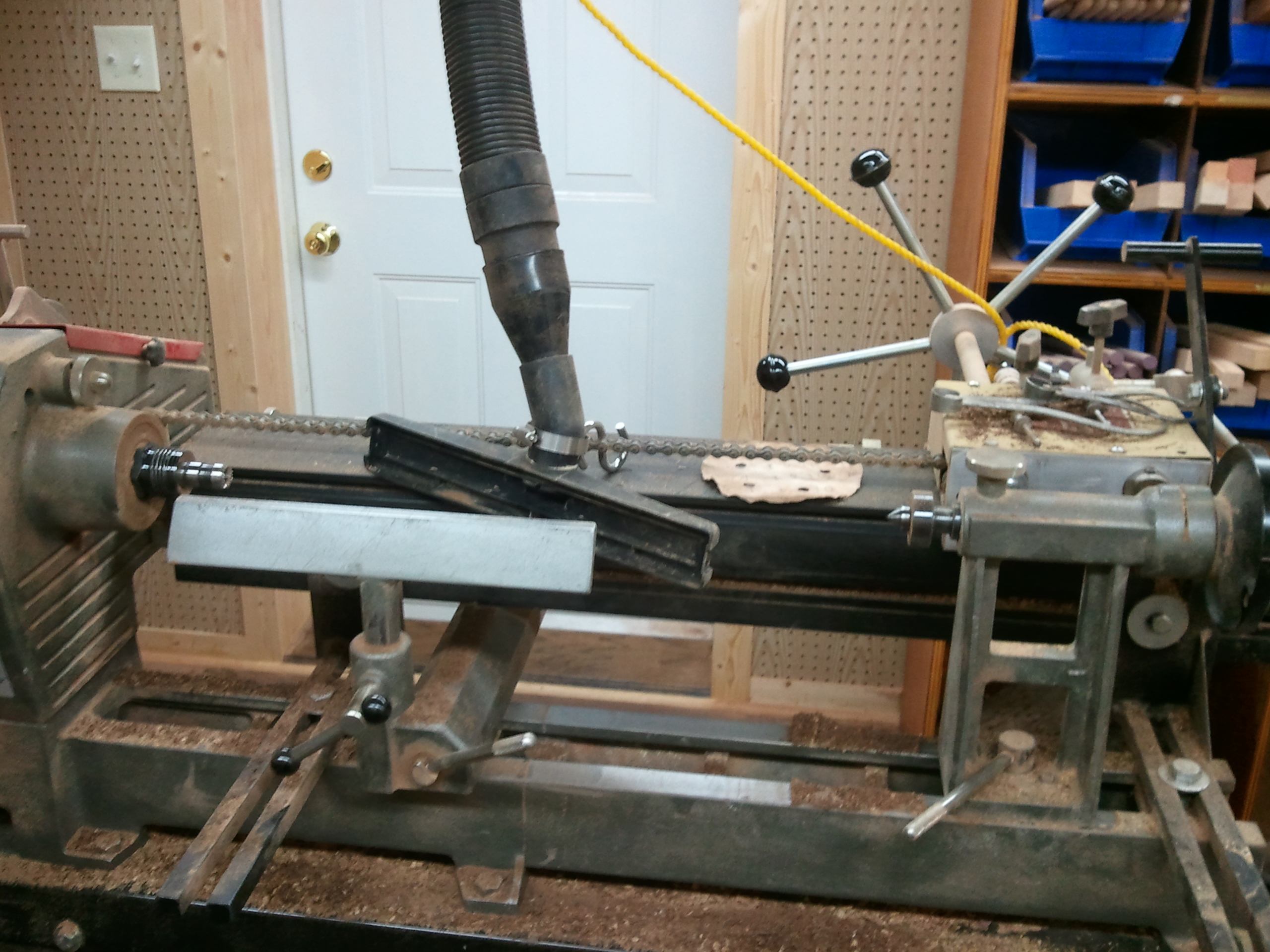 Here are a few pictures from my shop. I will post a video as soon as I find someone brave enough to get that close to me when the wood is flying.